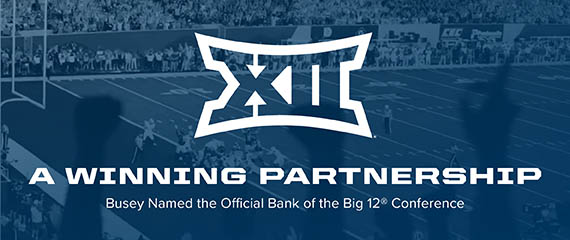 Busey is proud to be named the Official Bank of the Big 12 Conference. Together, we’re creating opportunities, celebrating teamwork and building a legacy of excellence that will reach far beyond the field.